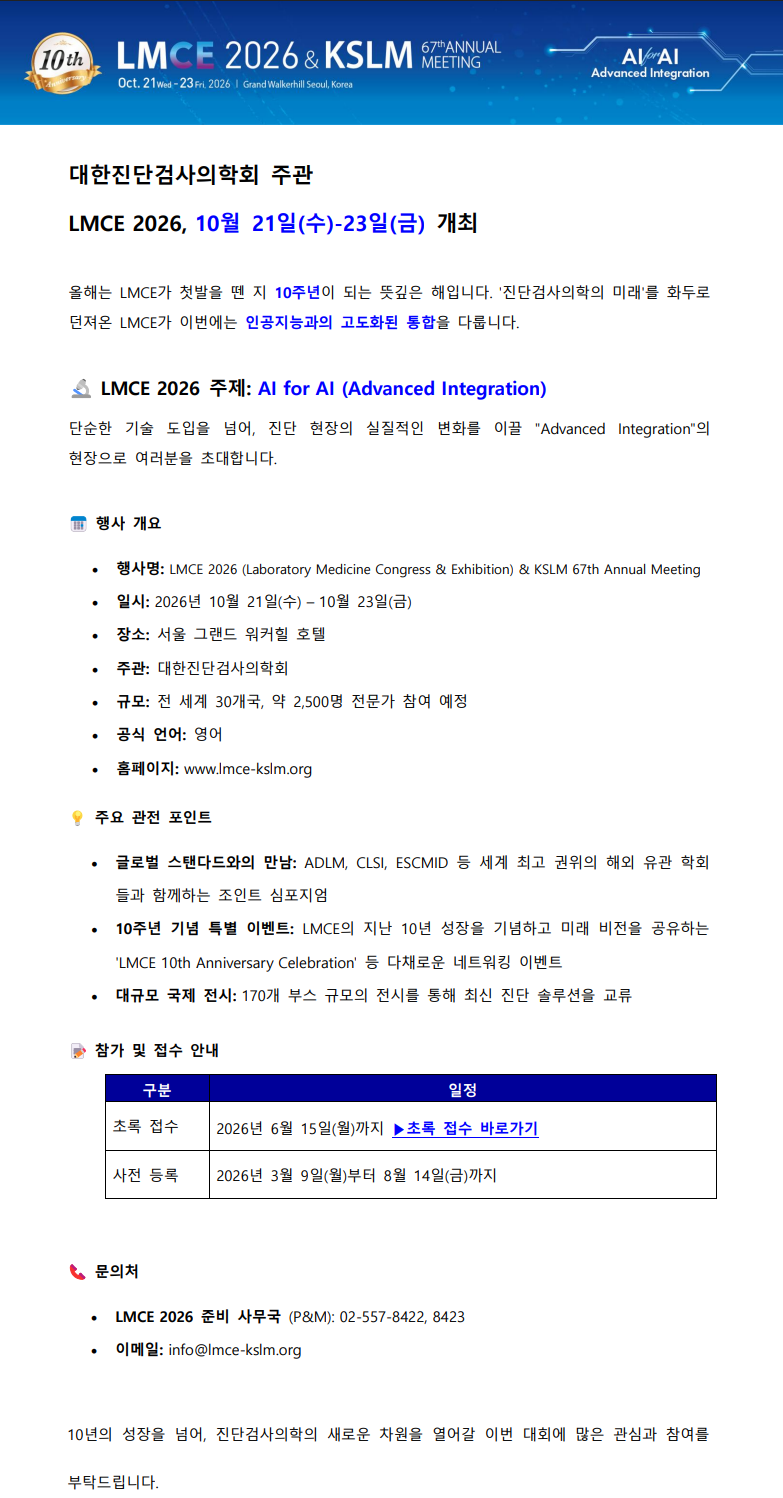 [대한진단검사의학회] 2026년 대한진단검사의학회 국제학술대회 안내